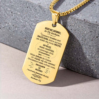 Wyjątkowy naszyjnik, nieśmiertelnik z grawerem wykonany z wysokiej jakości stali chirurgicznej, odpornej na zarysowania i blaknięcie. Dostępny również w wersji pozłacanej, dzięki czemu możesz wybrać styl dopasowany do charakteru osoby, którą chcesz obdarować.